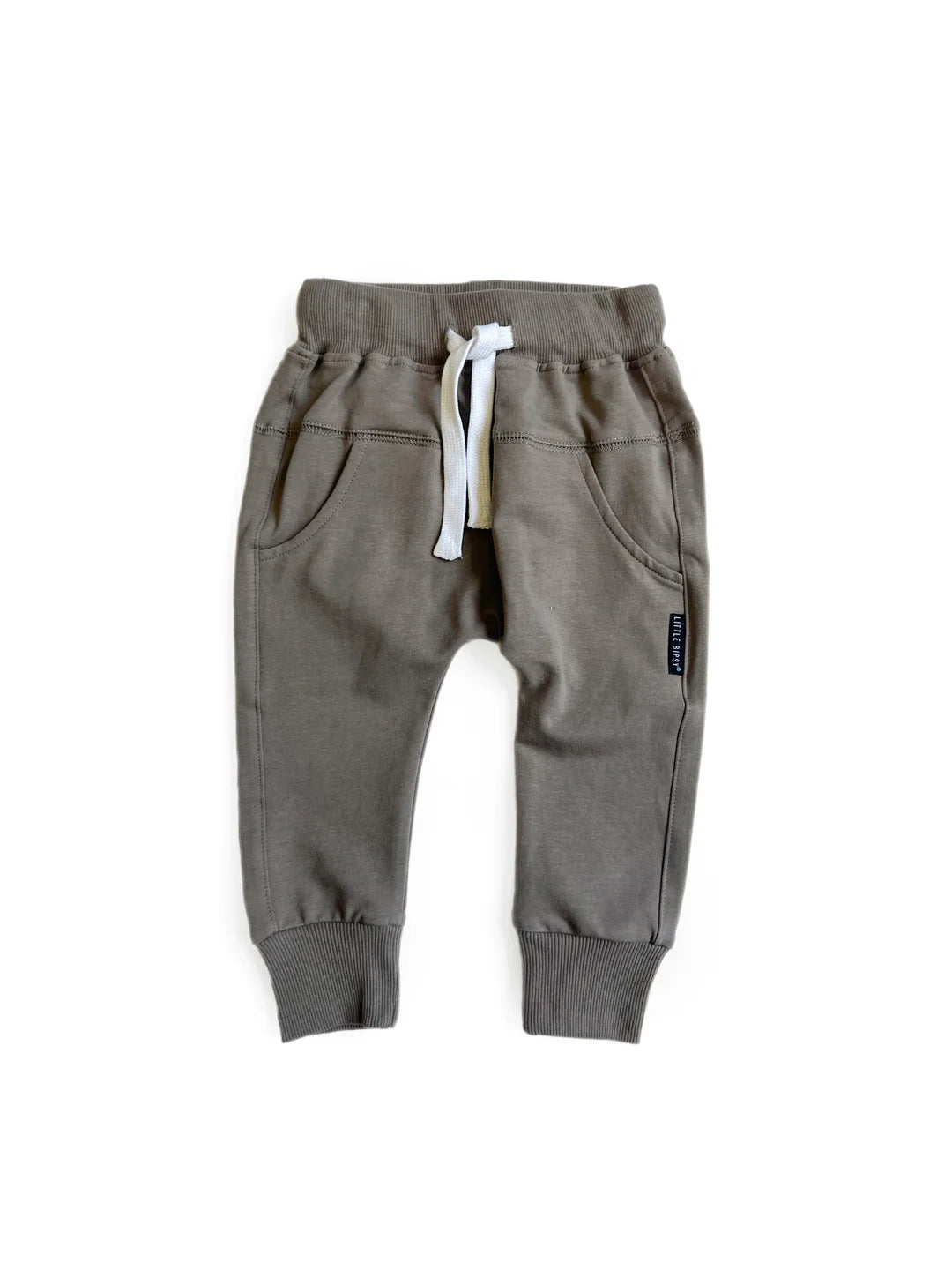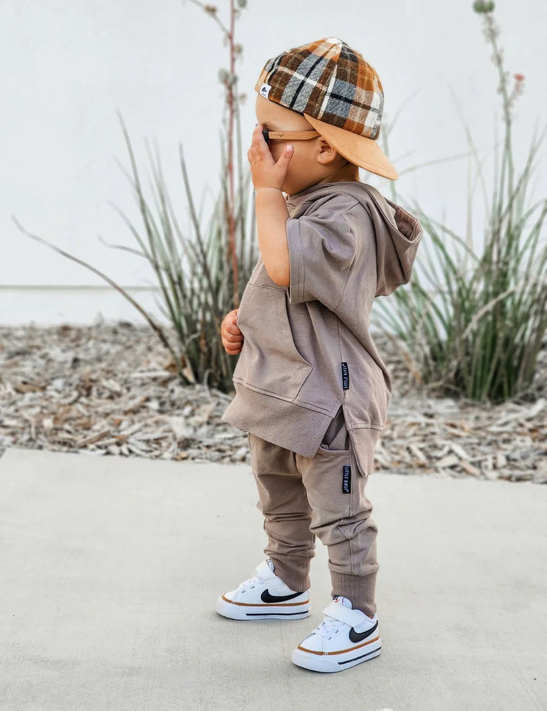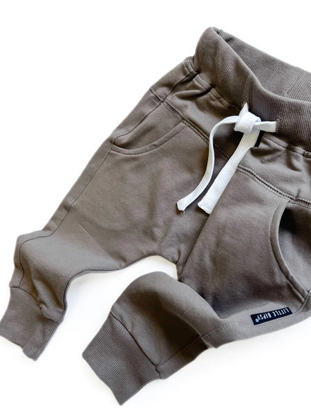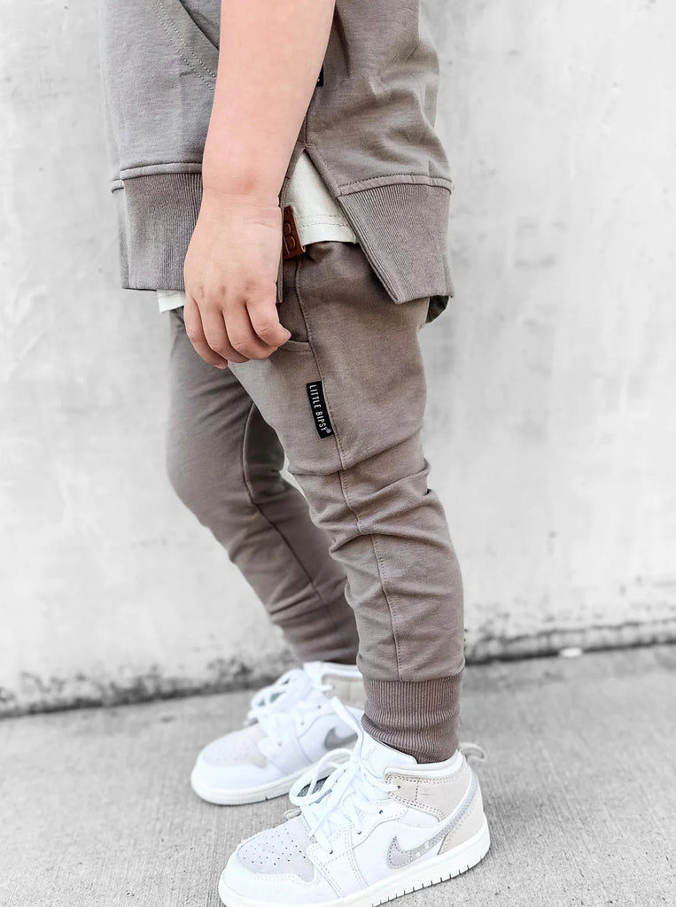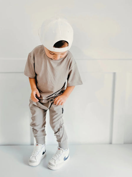 One of your favorites. And ours! We are BACK with one of our most popular pieces in our most popular colors! Say hello to our signature joggers in Mushroom and Pewter. These joggers are the EXACT same, incredible material as our Core Collection Jogger. Prep for fall with these neutral-toned, and ever-in-style kids joggers.