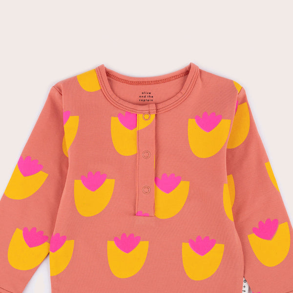 premium cotton + elastane blend / high quality fabric for durability and maximum comfort / snap buttons down the front and additional buttons around legs for easy dressing and changing / versatile style can be worn alone with legs out or layered under pants / Melbourne designed / ethically made in China / eco bags and packaging / all Olive and the Captain prints are designed in-house, making them truly one of a kind