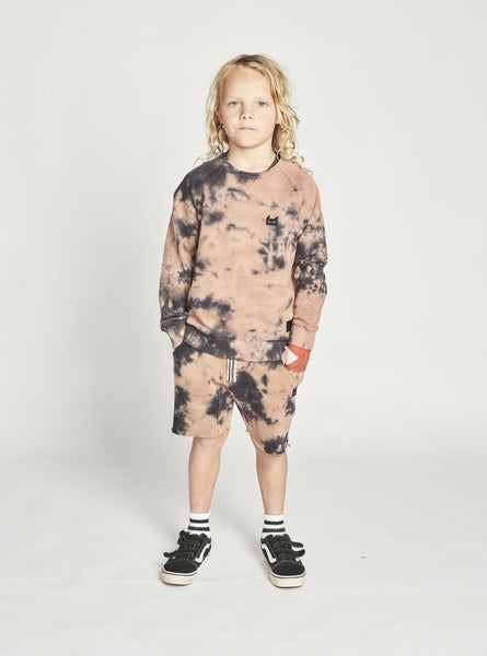 100% COTTON FLEECE CUT OFF SHORT WITH ALL OVER TYE DYE