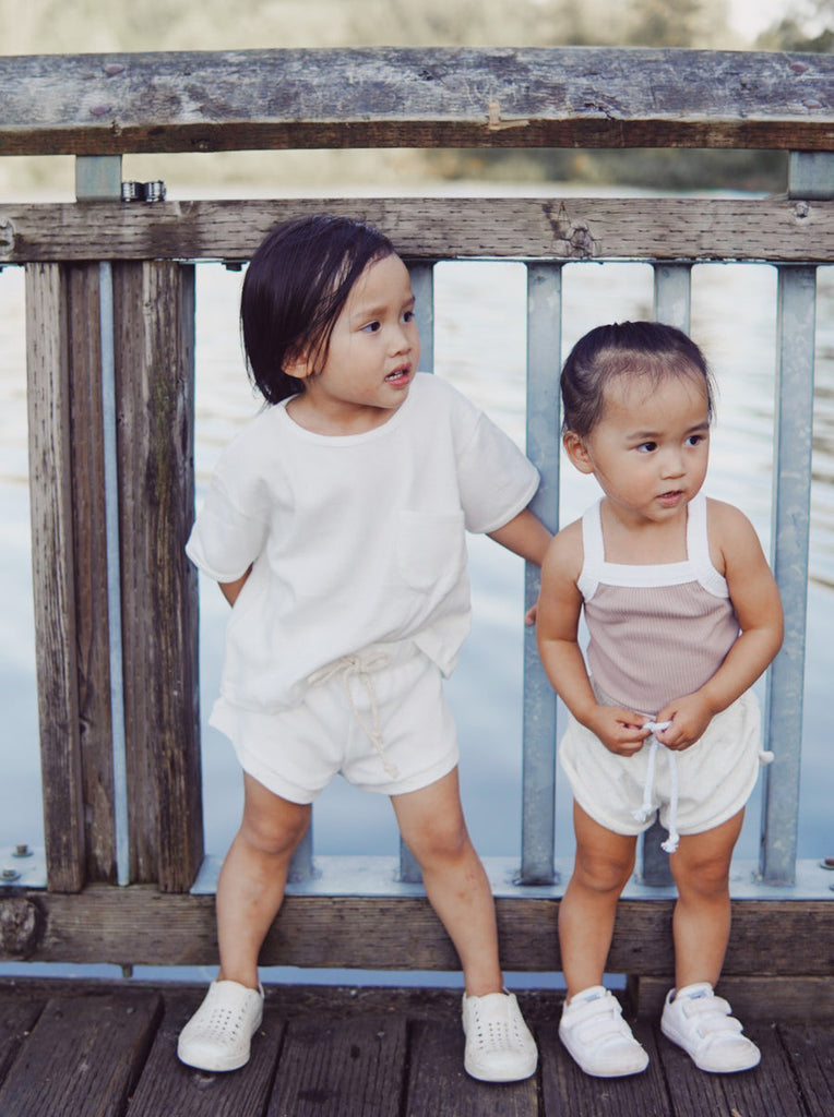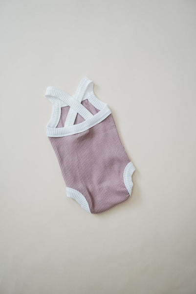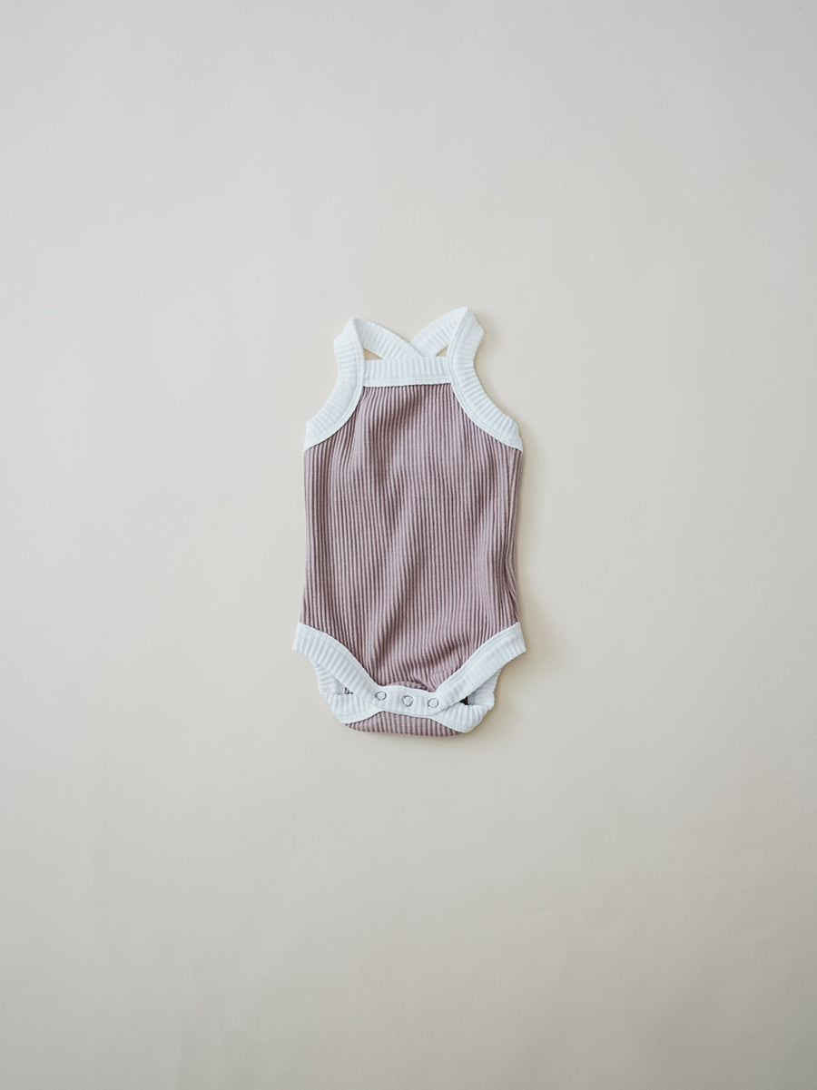 A fun, cute ribbed bodysuit with added cross-back detail for style. Pair with our shorts or with denim bottoms for an easy summer look.