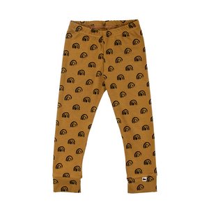 Our leggings are made out of super soft pre-shrunk jersey fabric and feature a 'pitched' waistband that is higher in the back than in the front to offer ample room for diapers (yes, even cloth diapers). The extra diaper room is removed for the bigger kid sizes, 2T - 4T.